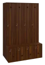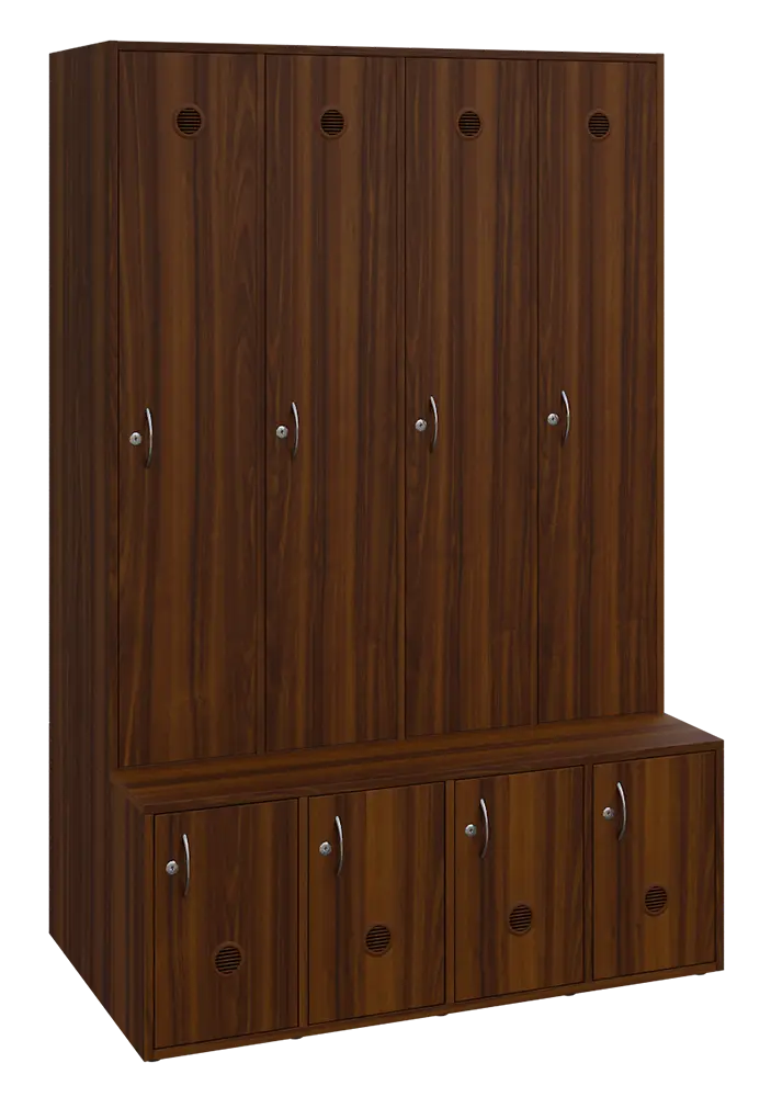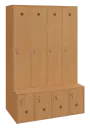 celolaminové šatní skříně, část na šaty a boty je samostatná, zároveň botník je předsazen a lze ho využít i na odkládání věci či jako šatní lavičku