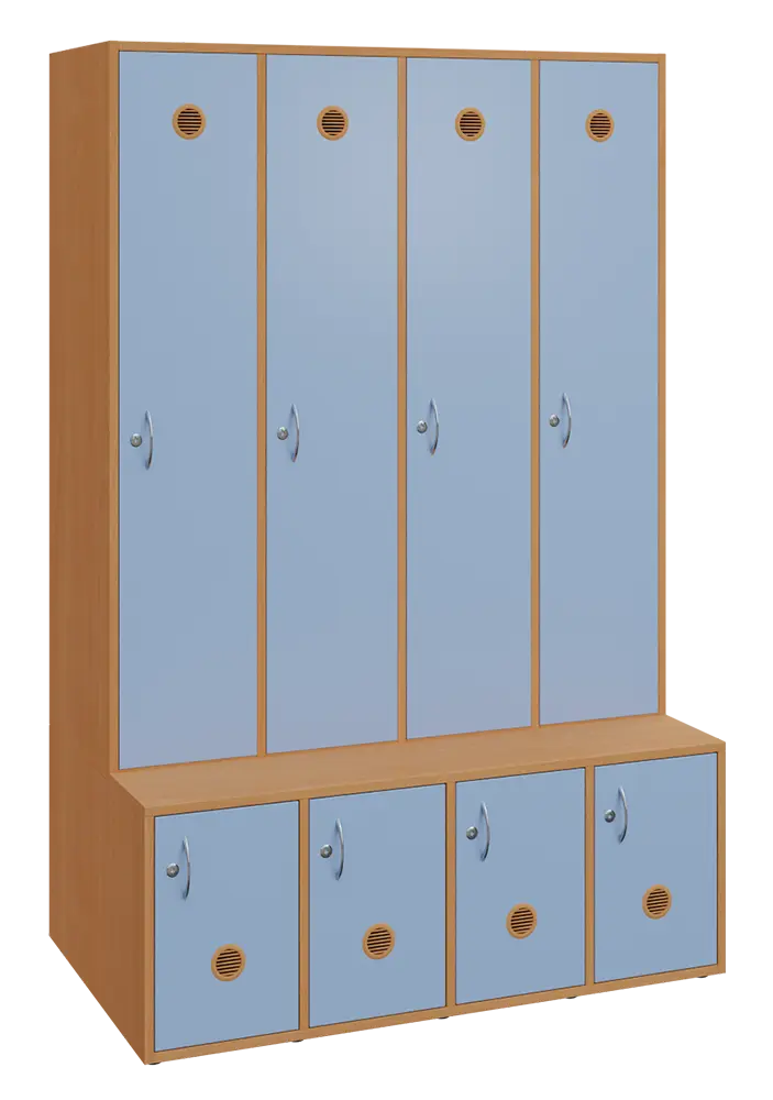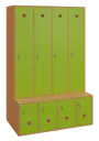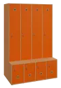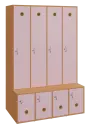 celolaminové šatní skříně, část na šaty a boty je samostatná, zároveň botník je předsazen a lze ho využít i na odkládání věci či jako šatní lavičku