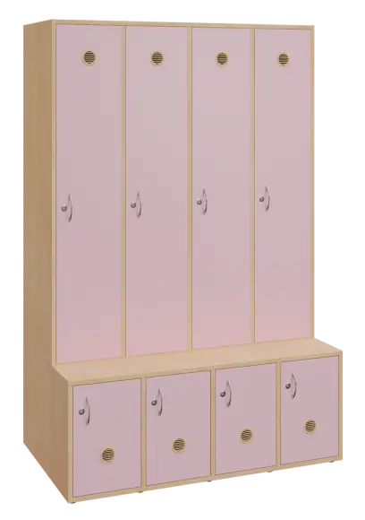 celolaminové šatní skříně, část na šaty a boty je samostatná, zároveň botník je předsazen a lze ho využít i na odkládání věci či jako šatní lavičku