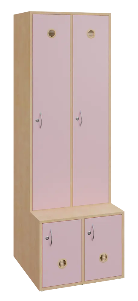 celolaminové šatní skříně, část na šaty a boty je samostatná, zároveň botník je předsazen a lze ho využít i na odkládání věci či jako šatní lavičku