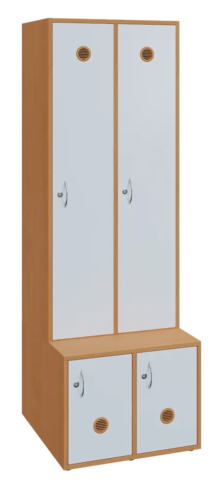 celolaminové šatní skříně, část na šaty a boty je samostatná, zároveň botník je předsazen a lze ho využít i na odkládání věci či jako šatní lavičku