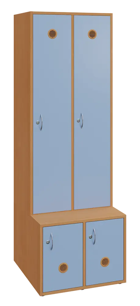 celolaminové šatní skříně, část na šaty a boty je samostatná, zároveň botník je předsazen a lze ho využít i na odkládání věci či jako šatní lavičku