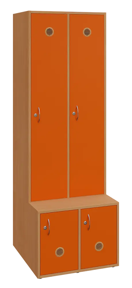 celolaminové šatní skříně, část na šaty a boty je samostatná, zároveň botník je předsazen a lze ho využít i na odkládání věci či jako šatní lavičku