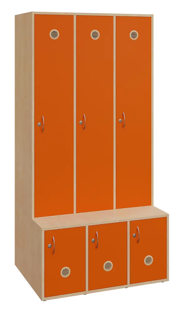 celolaminové šatní skříně, část na šaty a boty je samostatná, zároveň botník je předsazen a lze ho využít i na odkládání věci či jako šatní lavičku