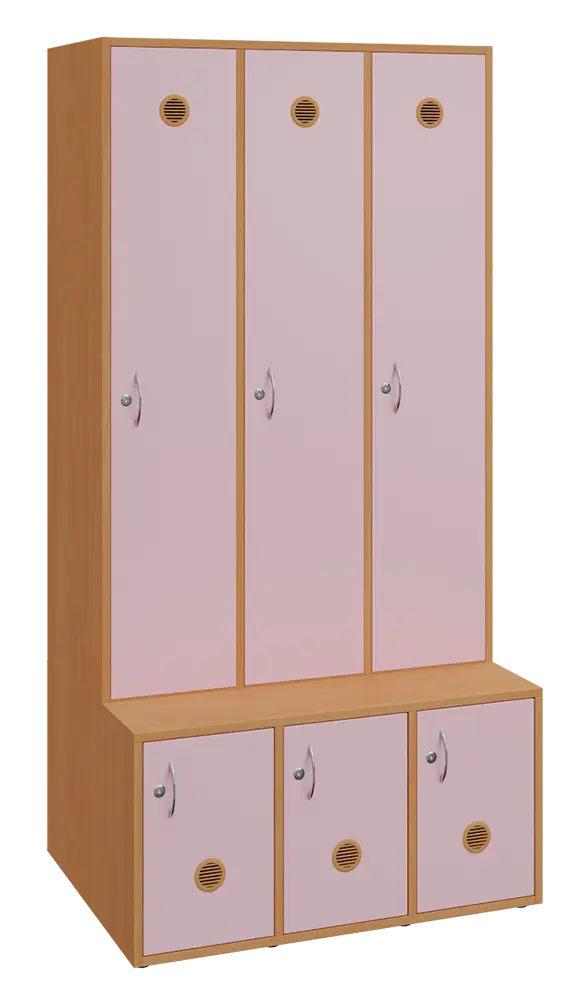 celolaminové šatní skříně, část na šaty a boty je samostatná, zároveň botník je předsazen a lze ho využít i na odkládání věci či jako šatní lavičku