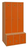 celolaminové šatní skříně, část na šaty a boty je samostatná, zároveň botník je předsazen a lze ho využít i na odkládání věci či jako šatní lavičku