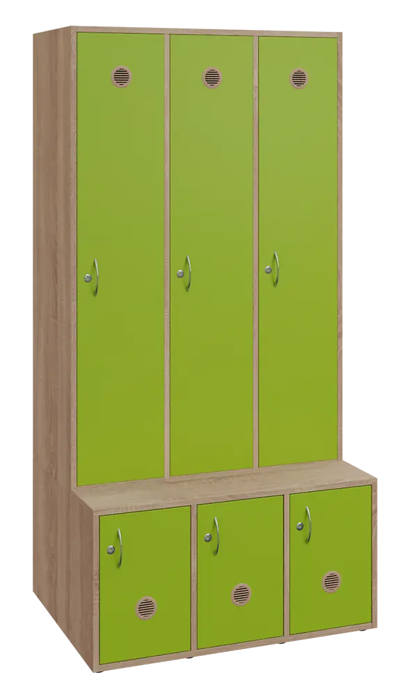 celolaminové šatní skříně, část na šaty a boty je samostatná, zároveň botník je předsazen a lze ho využít i na odkládání věci či jako šatní lavičku