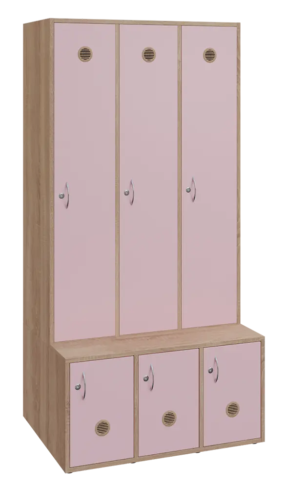 celolaminové šatní skříně, část na šaty a boty je samostatná, zároveň botník je předsazen a lze ho využít i na odkládání věci či jako šatní lavičku