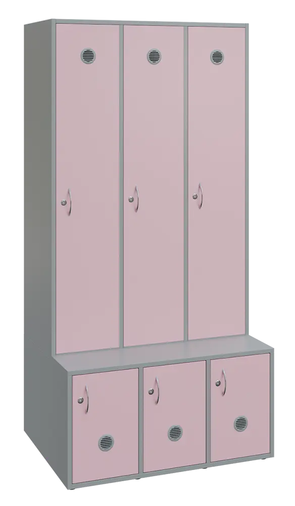 celolaminové šatní skříně, část na šaty a boty je samostatná, zároveň botník je předsazen a lze ho využít i na odkládání věci či jako šatní lavičku