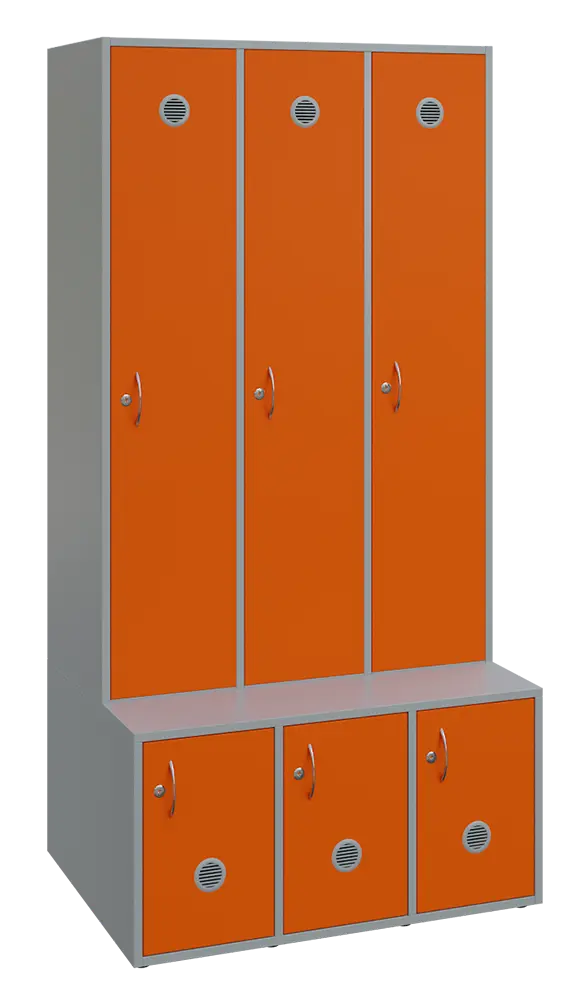 celolaminové šatní skříně, část na šaty a boty je samostatná, zároveň botník je předsazen a lze ho využít i na odkládání věci či jako šatní lavičku