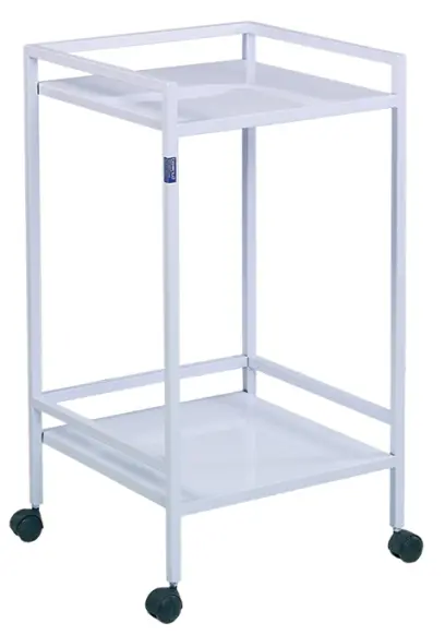 kovový svařovaný rám,horní plato stolku z nerezové oceli, manuální nastavení výšky