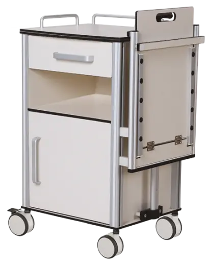 noční stolek k lůžku, snadno omyvatelné a dezinfikovatelné, osazeny kvalitními kolečky, vyrobeno z kvalitního lamina