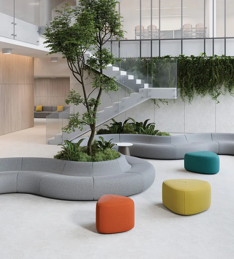 designové taburety organických tvarů se zaoblenými rohy, které svým vzhledem připomínají kameny, tři velikosti v různých barvách lze vzájemně kombinovat a doplňovat s dalším sezením např. se sedacími soupravami, modulárními sestavami