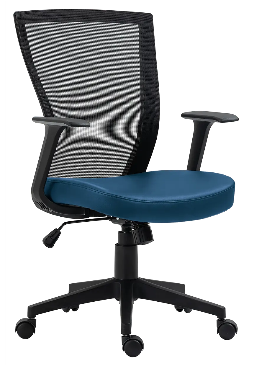 kancelářská židle s ergonomicky tvarovaným opěrákem čalouněným prodyšnou síťovinou, sedák čalouněný kvalitní koženkou