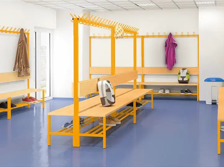 jednostranná šatní věšáková stěna, kostra kovová, praktický rošt na obuv, sedací plocha z lamino desky