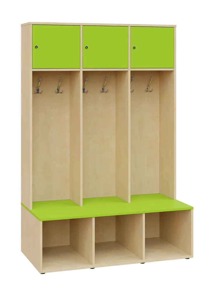 celolaminové otevřené šatní skříně jsou koncipované do sportovišť a šaten, ve vrchní části je vsazena uzamykatelná skříňka, osazena kvalitním zámkem se 2 klíči