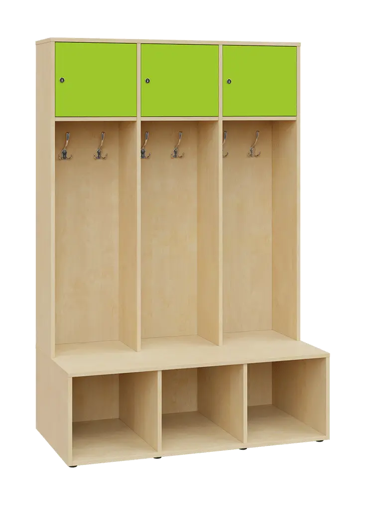 celolaminové otevřené šatní skříně jsou koncipované do sportovišť a šaten, ve vrchní části je vsazena uzamykatelná skříňka, osazena kvalitním zámkem se 2 klíči