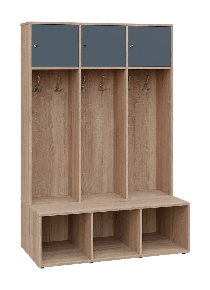 celolaminové otevřené šatní skříně jsou koncipované do sportovišť a šaten, ve vrchní části je vsazena uzamykatelná skříňka, osazena kvalitním zámkem se 2 klíči