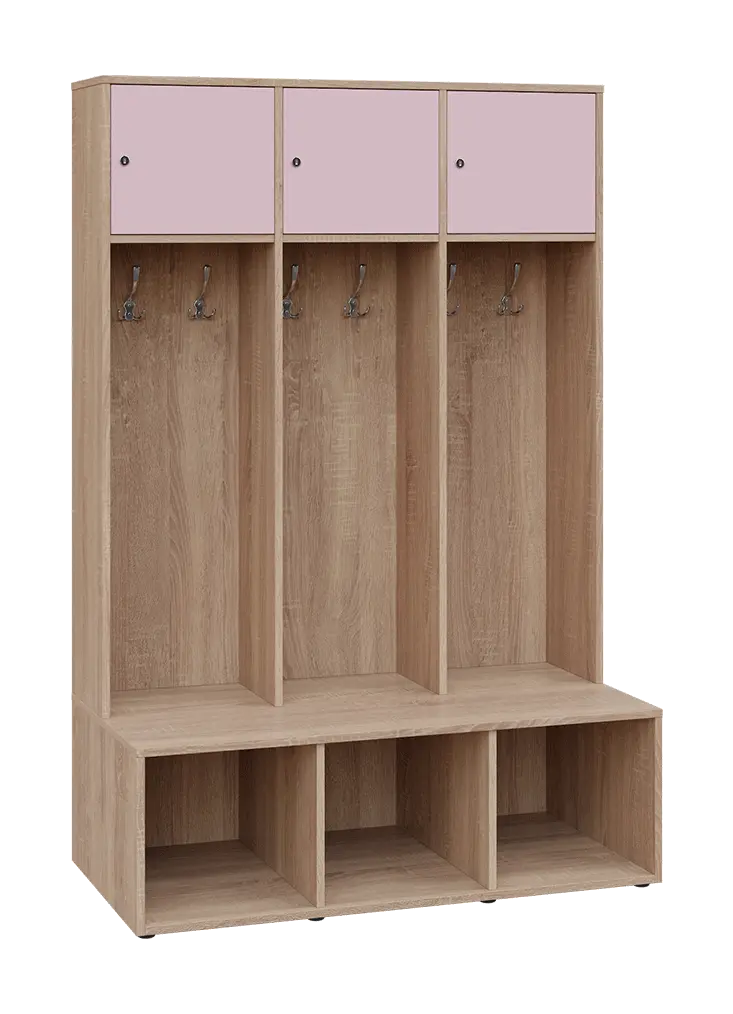 celolaminové otevřené šatní skříně jsou koncipované do sportovišť a šaten, ve vrchní části je vsazena uzamykatelná skříňka, osazena kvalitním zámkem se 2 klíči