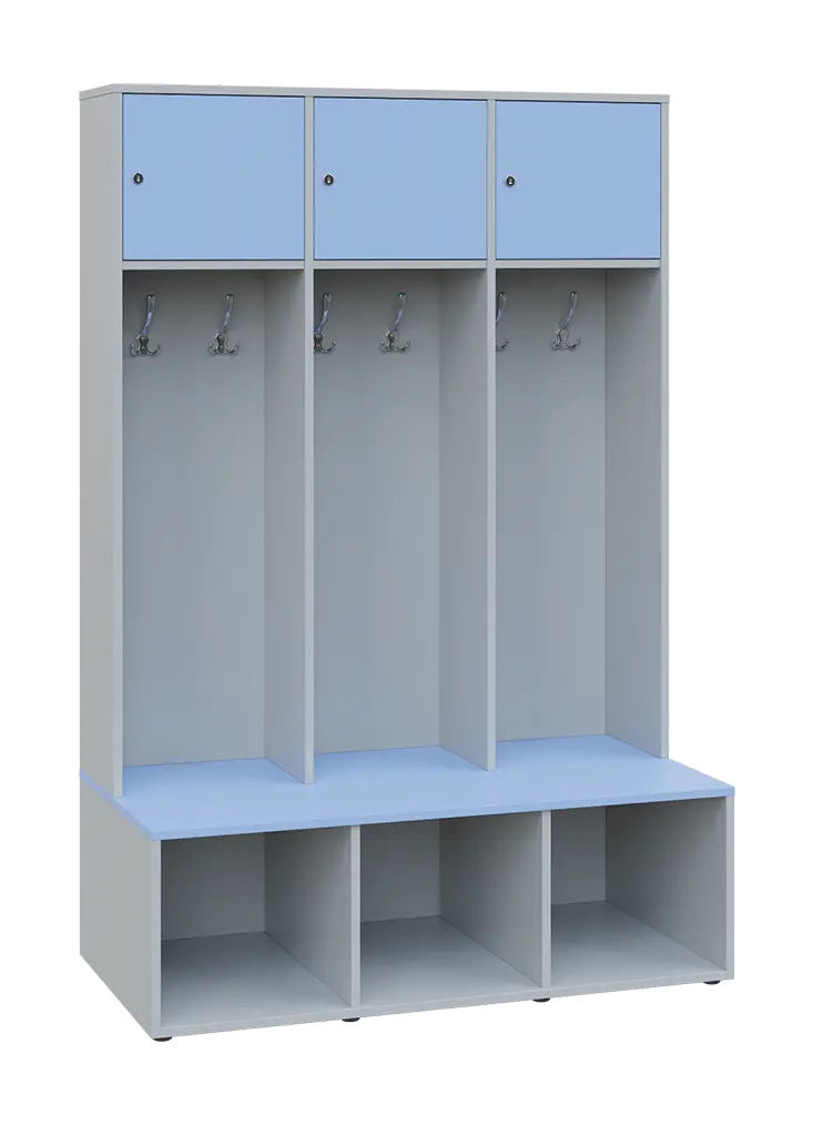 celolaminové otevřené šatní skříně jsou koncipované do sportovišť a šaten, ve vrchní části je vsazena uzamykatelná skříňka, osazena kvalitním zámkem se 2 klíči