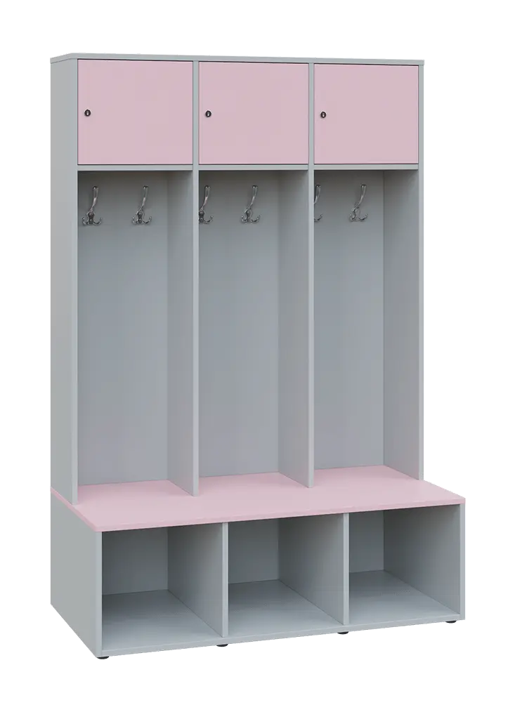 celolaminové otevřené šatní skříně jsou koncipované do sportovišť a šaten, ve vrchní části je vsazena uzamykatelná skříňka, osazena kvalitním zámkem se 2 klíči