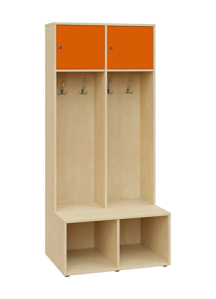 celolaminové otevřené šatní skříně jsou koncipované do sportovišť a šaten, ve vrchní části je vsazena uzamykatelná skříňka, osazena kvalitním zámkem se 2 klíči