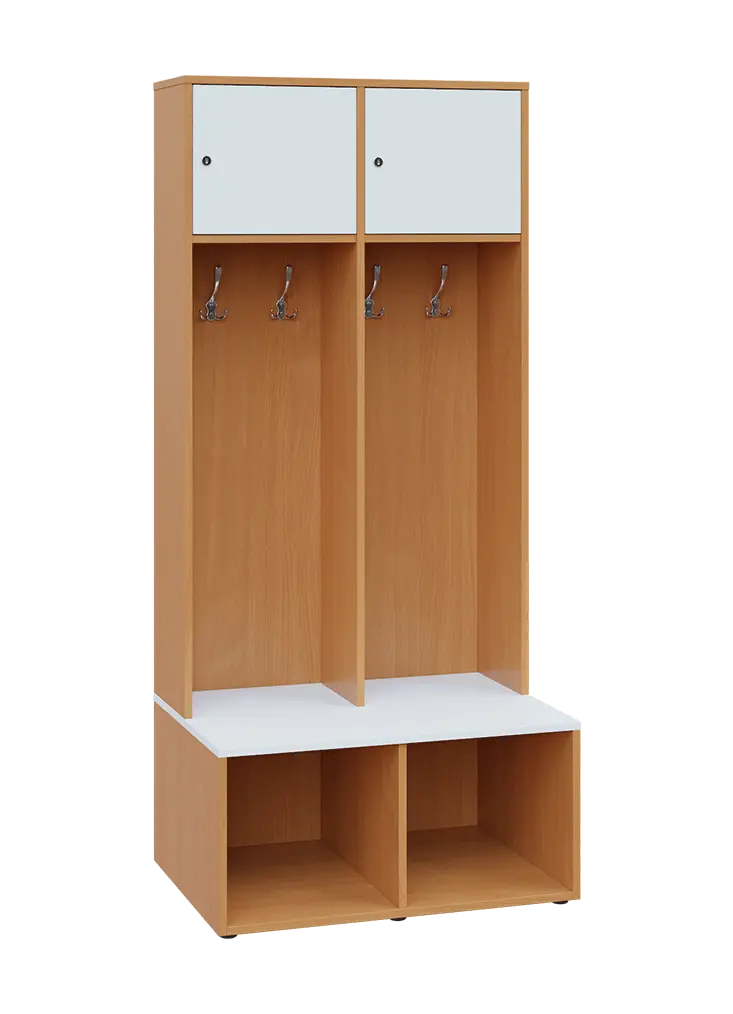 celolaminové otevřené šatní skříně jsou koncipované do sportovišť a šaten, ve vrchní části je vsazena uzamykatelná skříňka, osazena kvalitním zámkem se 2 klíči