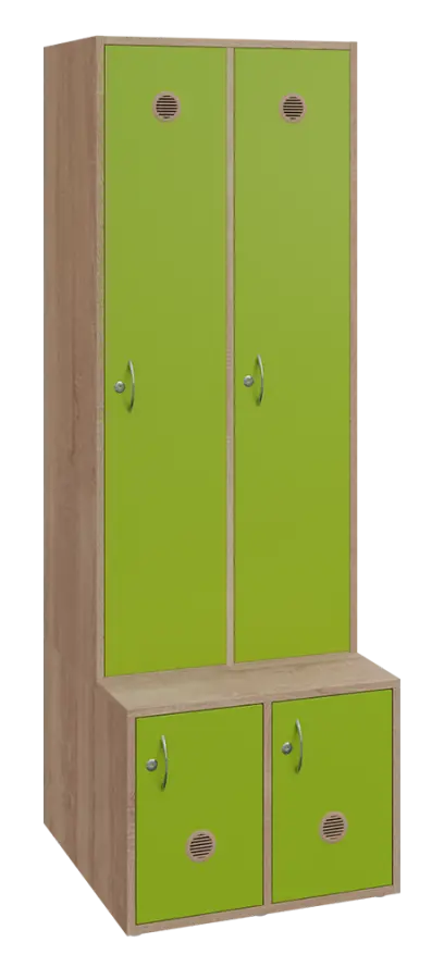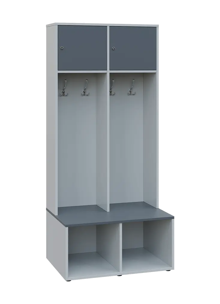celolaminové otevřené šatní skříně jsou koncipované do sportovišť a šaten, ve vrchní části je vsazena uzamykatelná skříňka, osazena kvalitním zámkem se 2 klíči