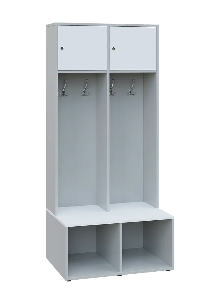 celolaminové otevřené šatní skříně jsou koncipované do sportovišť a šaten, ve vrchní části je vsazena uzamykatelná skříňka, osazena kvalitním zámkem se 2 klíči