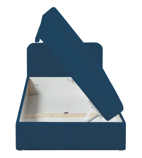 celočalouněná válenda s úložným prostorem,čalouněná opěrná deska v hlavové části, dřevěná konstrukce, matrace z kvalitní pěny, pružinový rošt