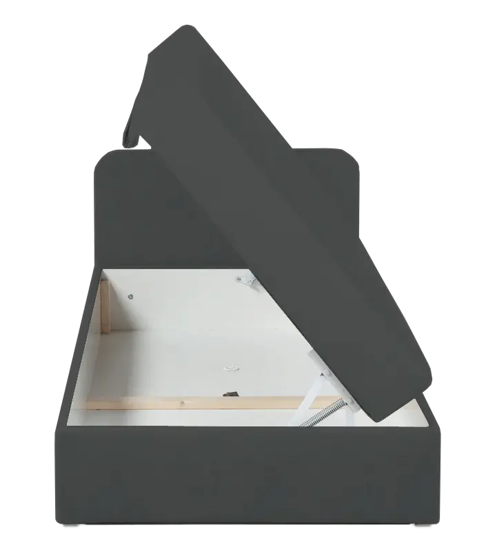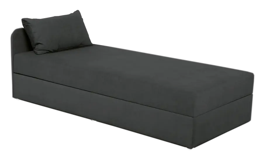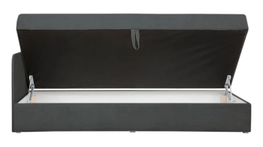 celočalouněná válenda s úložným prostorem,čalouněná opěrná deska v hlavové části, dřevěná konstrukce, matrace z kvalitní pěny, pružinový rošt