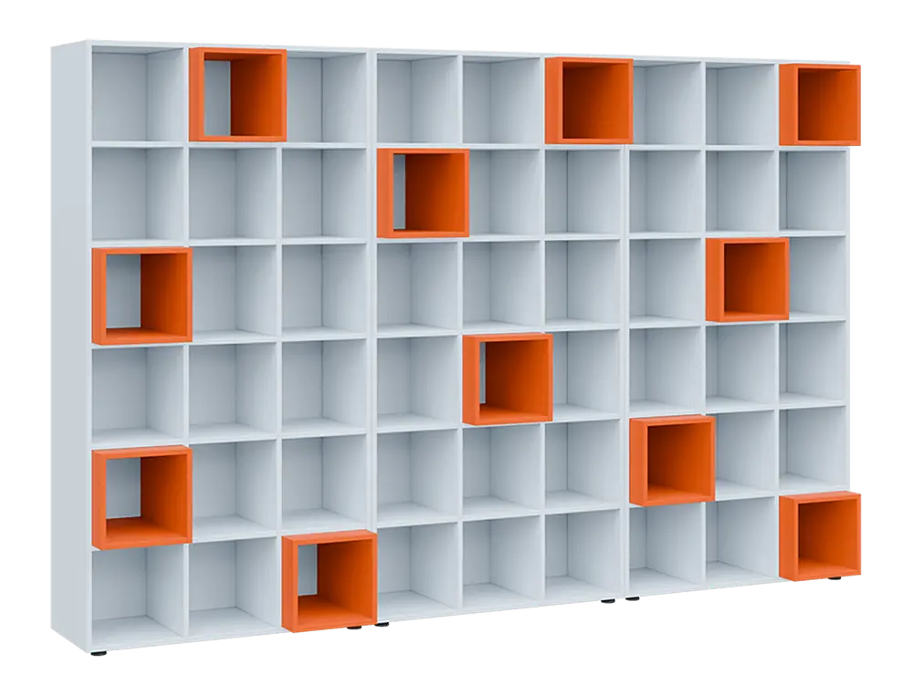 S našimi skříňkami si doslova vyhrajete. Můžete si z nich tvořit sestavy nízké i vysoké, krátké i dlouhé, přestavovat police dle libosti a rozdělovat boxy za pomocí barevných výplní.