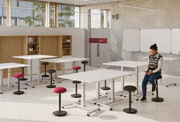 výškové stavitelné mobilní stoly, snadná manipulace, stříbrná podnož