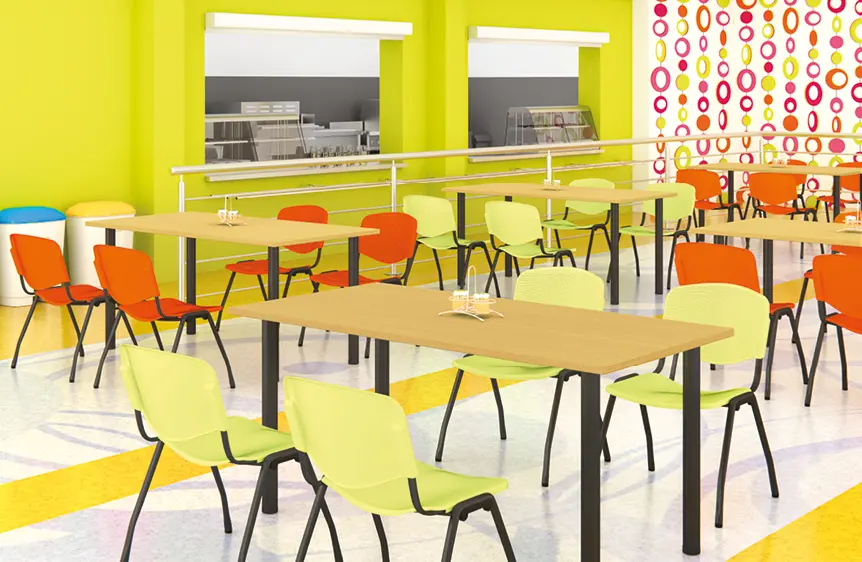 stohovatelné plastové židle, omyvatelný povrch usnadňuje udržování hygienických podmínek, podnož z ocelových profilů v černé barvě