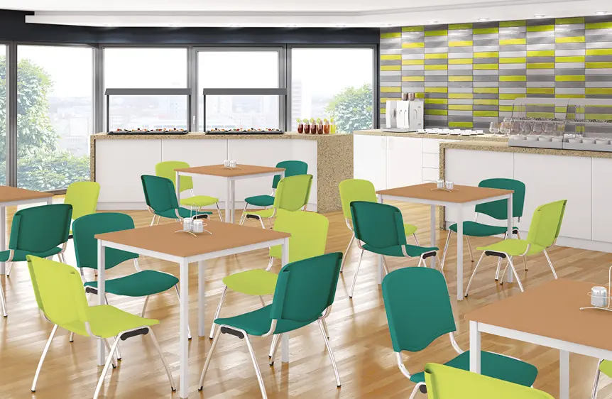 stohovatelné plastové židle, omyvatelný povrch usnadňuje udržování hygienických podmínek, podnož z ocelových profilů v stříbrné barvě