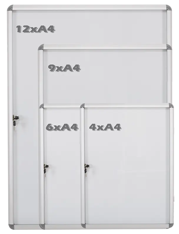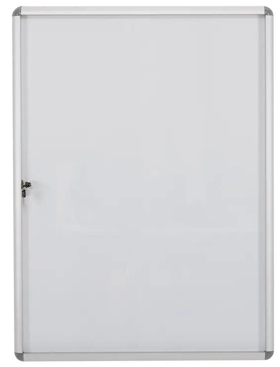 vnitřní uzamykatelná vitrína vhodná k montáži na stěnu (montážní materiál součástí balení), bílý popisovatelný magnetický povrch, hliníkový rám