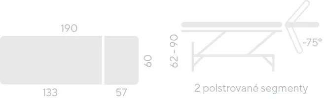 jednomotorové lehátko s elektrickým nastavením výšky stolu, nastavitelný hlavový díl, komfortní pěnová matrace opatřená kvalitní koženkou