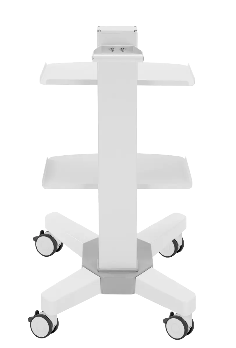 praktický policový přístrojový vozík, VPI vozík umožňuje díky speciálně profilovaným sloupkům výškovou přestavitelnost polic přesně dle používaných přístrojů a potřeby přístupu