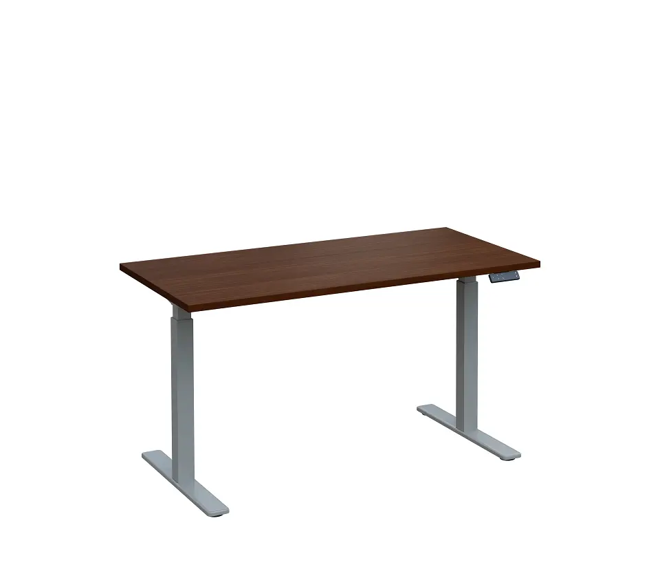 elektrický výškově stavitelný stůl, 720-1150x1400x700, stříbrná kovová podnož, deska ořech královský