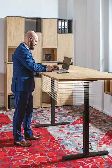 elektrický výškově stavitelný stůl, 720-1150x1600x800, antracitová kovová podnož, deska ořech světlý