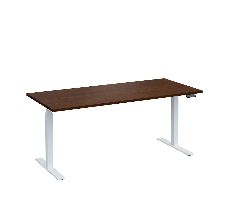 elektrický výškově stavitelný stůl, 720-1150x1800x800, bílá kovová podnož, deska ořech královský