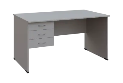 BPL 18 - 14Z13 stůl pracovní, 3-zásuvkový, levý, dřevěná podnož, deska 18 mm, široký 1400 mm, šedá