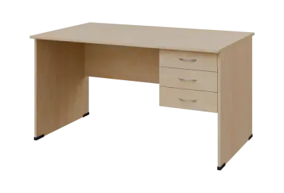 BPL 18 - 14Z13 stůl pracovní, 3-zásuvkový, pravý, dřevěná podnož, deska 18 mm, široký 1400 mm, bříza světlá