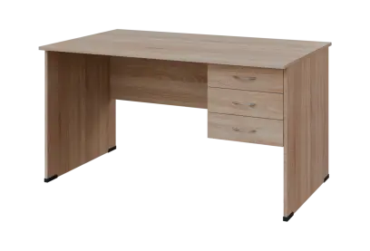 BPL 18 - 14Z13 stůl pracovní, 3-zásuvkový, pravý, dřevěná podnož, deska 18 mm, široký 1400 mm, dub bardolino