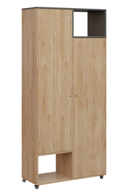 AERO 62 P skříň šatní 2-dveřová/2 niky, výsuvné ramínko, pravá, 2150x1000x400, kolečka, lávově šedá/dub fjord