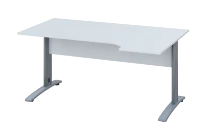 BRK 18 - 164 stůl pracovní, rohový, levý, kovová podnož bílá, deska 18 mm, široký 1600 mm, bříza světlá