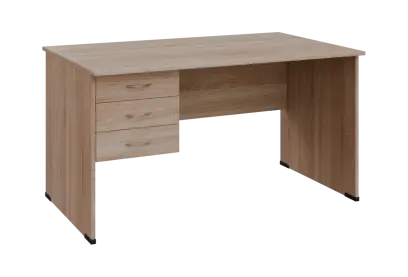 BPL 28 - 14Z13 stůl pracovní, 3-zásuvkový, levý, dřevěná podnož, deska 25 mm, široký 1400 mm, dub bardolino