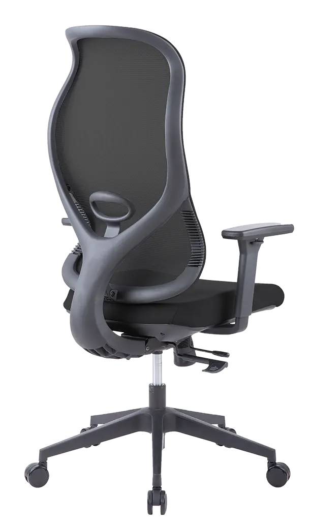 elegantně tvarovaná kancelářská židle čistých linií, opěrák ve tvaru vlny s integrovanou bederní opěrkou a s čalouněním samonosnou síťovinou