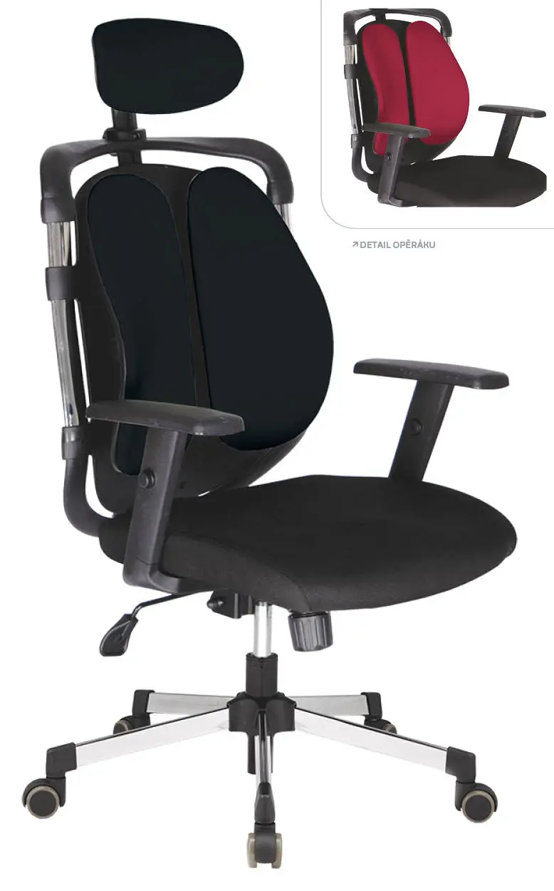 kancelářská židle s propracovanou ergonomií sedáku a opěráku, čalounění ve vysoce odolné látce, sychronní mechanika s možností aretace, chromovaný kříž s nosností 120 kg