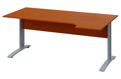 CRK 28 - 166 stůl kancelářský, rohový, pravý, kovová podnož stříbrná, deska 25 mm, široký 1600 mm, třešeň šumavská